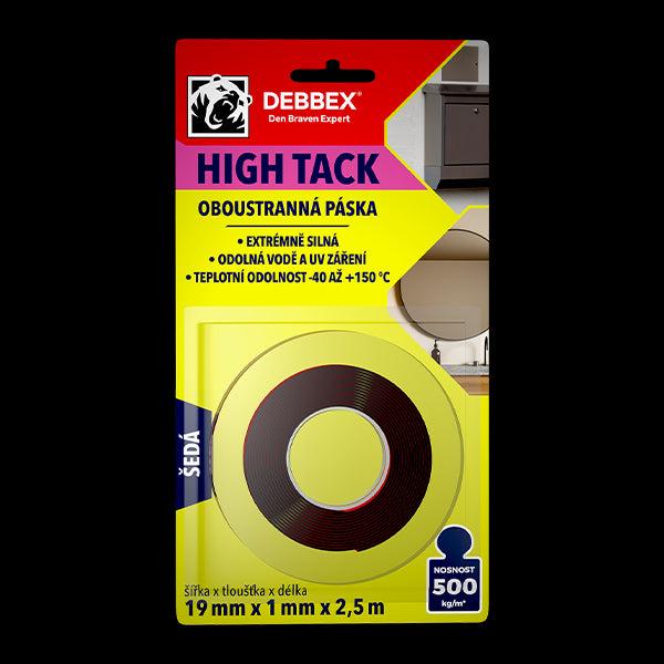 Cinta doble cara HIGH TACK 19 mm × 1 mm, longitud 2,5 m gris