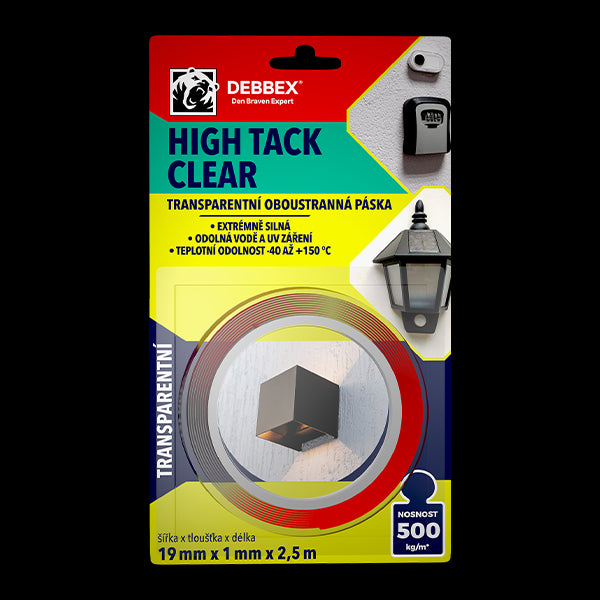 Cinta doble cara HIGH TACK CLEAR con una capa adhesiva acrílica extra fuerte. Se adhiere a una amplia gama de superficies de manera muy fuerte. Tiene la gran ventaja de una unión transparente y adherencia total inmediata, acelerando así el montaje y la puesta en funcionamiento del objeto pegado.