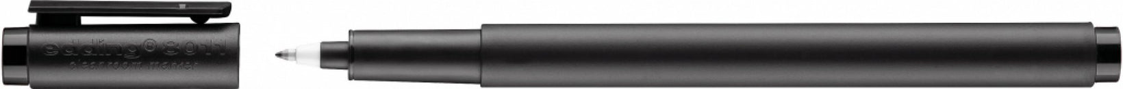 La punta redonda es muy fina con un ancho de trazo de 0,6 mm. Disponible en negro y azul.