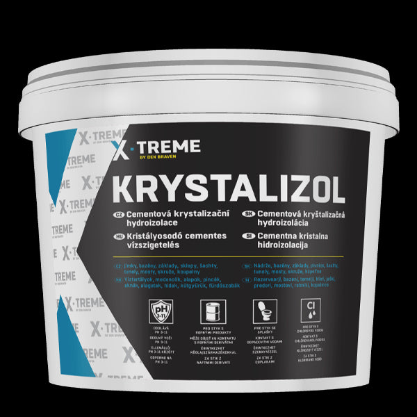 Es un sistema impermeable que evita la penetración de agua en el hormigón o en otros sustratos de cemento expuestos a la presión constante del agua. Garantiza un aumento de la impermeabilidad de los hormigones y morteros contra el agua, ácidos y productos petroleros, previene la corrosión del hormigón y al mismo tiempo forma una capa impermeable en la superficie. Sobre la superficie tratada con Krystalizol se pueden aplicar cualquier tipo de recubrimientos y enlucidos.