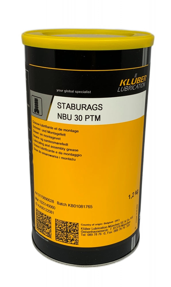 STABURAGS NBU 30 PTM es una grasa plástica de montaje contra la tribocorrosión (corrosión de contacto, corrosión por fricción) con contenido de grasa sólida, el producto es resistente al agua.