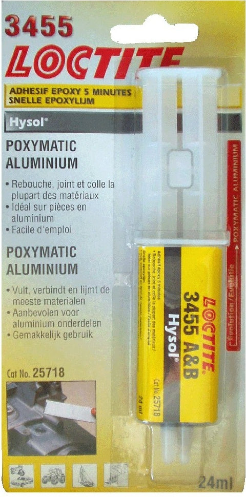 El metal líquido LOCTITE 3455 es un pegamento epóxico de dos componentes con un alto contenido de aluminio. Está diseñado principalmente para pegar aluminio. LOCTITE 3455 es especialmente adecuado para pegado industrial, pero sin duda también lo utilizará en el taller. Además de pegar aluminio, este pegamento (metal líquido) también se puede usar para sellar aluminio y posiblemente otros metales de aleaciones ligeras. Es capaz de rellenar juntas superficiales de hasta 3 mm y también puede servir como pegamento estructural. El uso principal del pegamento epóxico LOCTITE 3455 es principalmente la reparación de piezas de aluminio dañadas, como el pegado y reparación de bloques de motores, cubiertas de transmisiones, etc., reparación de roscas, e incluso la reconstrucción de piezas de aluminio corroídas.