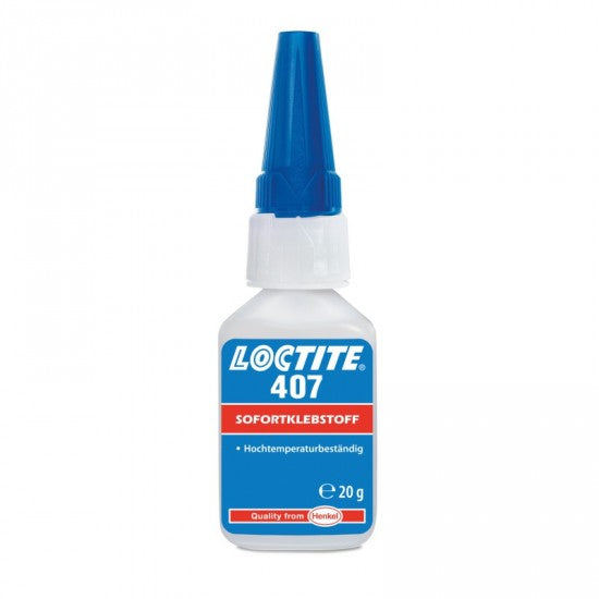 Pegamento instantáneo Loctite 407 muy resistente. Ofrece una mayor resistencia principalmente a la humedad, pero también a temperaturas más altas, lo que determina su uso. Es adecuado para pegar la mayoría de los materiales comunes.