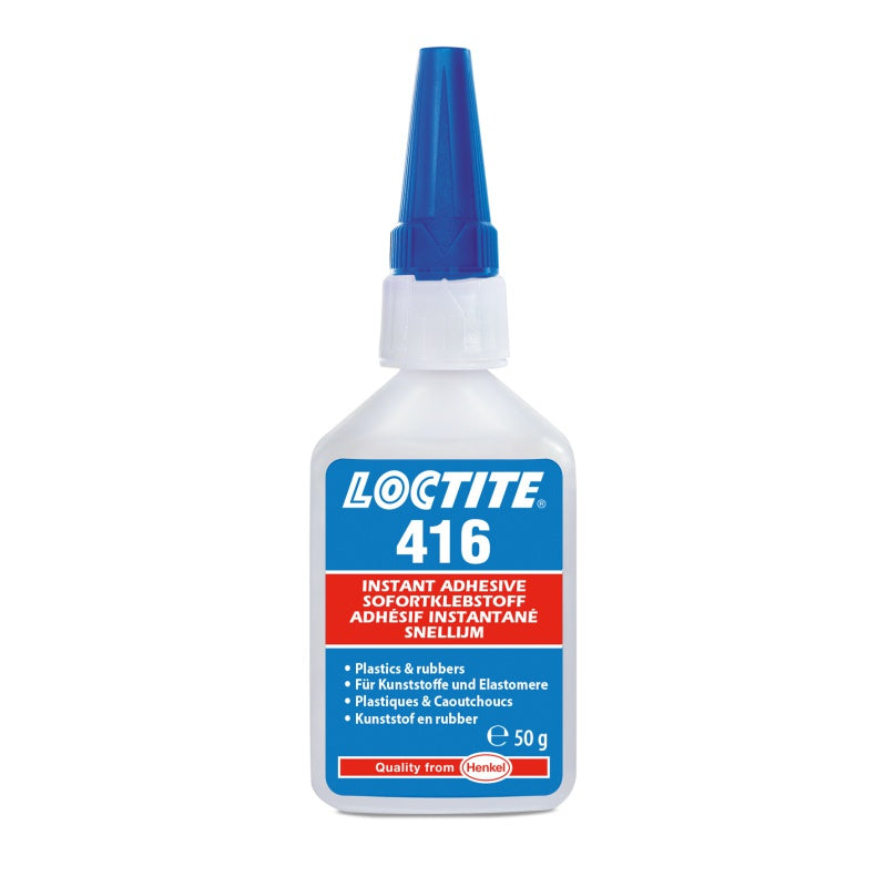 Pegamento instantáneo universal Loctite 416 de viscosidad media, diseñado para pegar la mayoría de los materiales. Une muy bien principalmente acero, aluminio, pero también PVC. Se cura en la unión en unos pocos segundos.