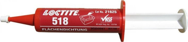 Loctite 518 es un producto de sellado anaeróbico monocomponente, de resistencia media, semielástico, que se cura en la junta entre dos superficies metálicas sólidas.