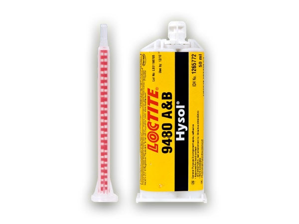 Adhesivo epóxido especial Loctite EA 9480, que es uno de los pocos aprobados para el contacto con alimentos. Se puede utilizar para pegar metales, plásticos y para reparaciones en la industria alimentaria y sectores relacionados.