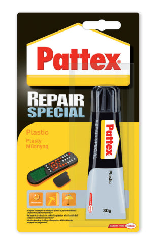 Pattex Repair Special Plásticos es un adhesivo a base de poliuretano ideal para pegar plásticos duros y blandos y sus combinaciones con varios otros materiales, por ejemplo: goma, cuero, cerámica, madera, metal, textil, etc.