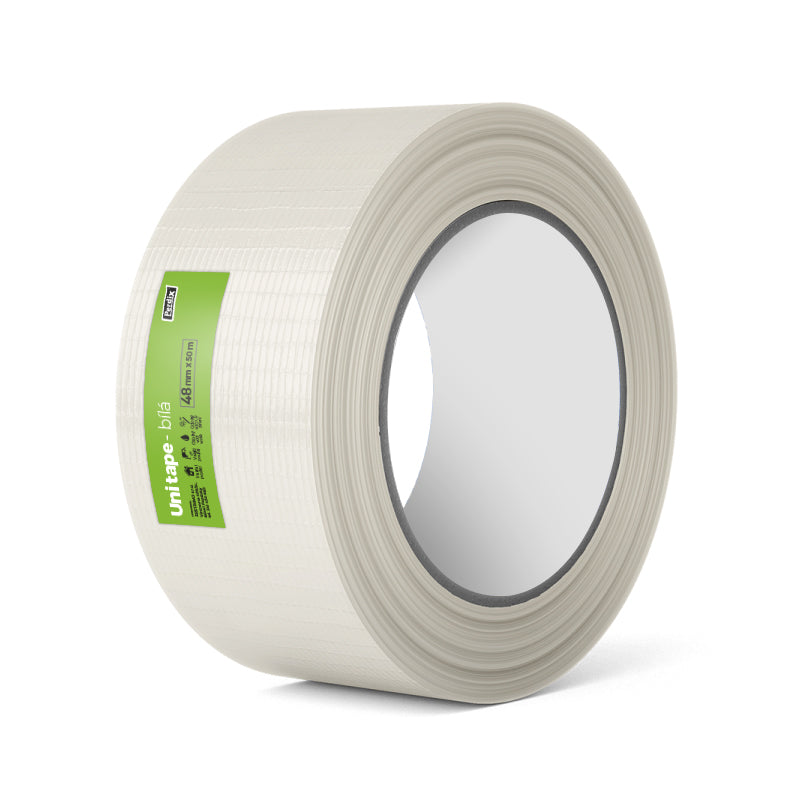 La cinta multipropósito waterproof Uni tape es una cinta adhesiva de un solo lado, cortable transversalmente, reforzada con tela de algodón. Está laminada con una capa de PE gris plateado. Es impermeable y a prueba de gas, se adhiere perfectamente a sustratos problemáticos como yeso, ladrillo y hormigón.