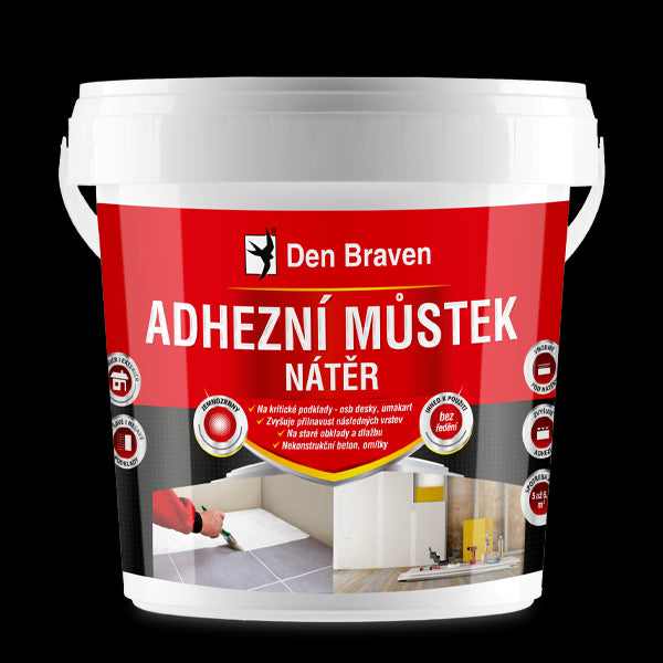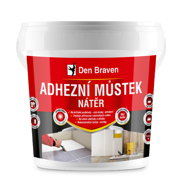 El puente de adherencia es un recubrimiento blanco de un solo componente sin disolventes, que se puede utilizar en interiores y exteriores sobre yesos curados, hormigón no estructural y visible, papel tapiz de vidrio, superficies de madera, papel, yeso de cartón sobre aglomerado, sobre tableros OSB, umakart, azulejos y pavimentos, etc.