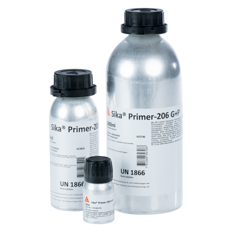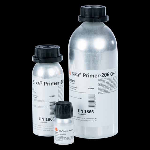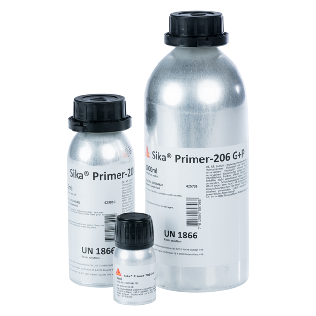 Sika Primer-206 G + P es una imprimación líquida negra que cura con humedad, especialmente desarrollada para el tratamiento de superficies pegadas en el acristalamiento directo antes de la aplicación de adhesivos Sika para acristalamiento directo con poliuretano. Imprimación líquida para su uso en una amplia gama de superficies de vidrio. Mejora la adherencia a superficies de vidrio y cerámica.