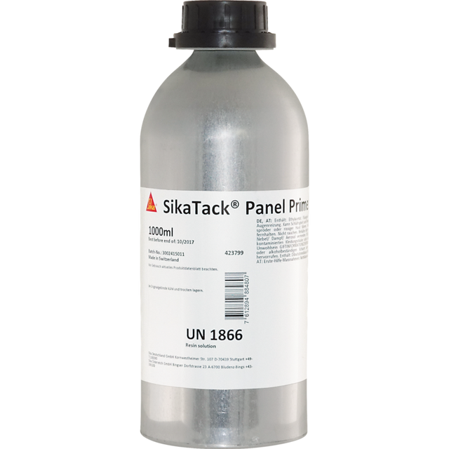 SikaTack® Panel Primer es una solución de resina pigmentada (negra) en disolvente, que reacciona con la humedad formando una capa delgada en la superficie del sustrato. Esta capa crea una conexión entre el sustrato y el adhesivo. SikaTack® Panel Primer ha sido especialmente desarrollado para tratar las superficies a unir antes de la aplicación de los adhesivos SikaTack® Panel. SikaTack® Panel Primer es parte del sistema para fachadas ventiladas ocultas. En el sistema SikaTack® Panel, los paneles de fachada se fijan de manera invisible (con unión adhesiva) a su estructura inferior.