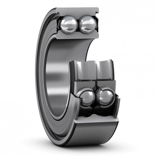 El rodamiento tiene un ángulo de contacto de 30° y los cuerpos rodantes están dispuestos como en un par combinado de rodamientos de bolas de una fila con contacto angular en configuración O, es decir, espalda con espalda, y puede soportar cargas radiales y axiales bidireccionales.