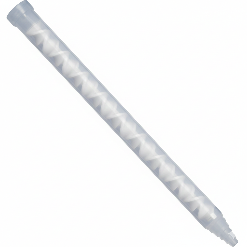 Boquilla mezcladora adecuada para materiales 2K como siliconas y polímeros MS, comúnmente de 400 y 200 ml, p. ej. de las marcas Loctite, Teroson y otros.
