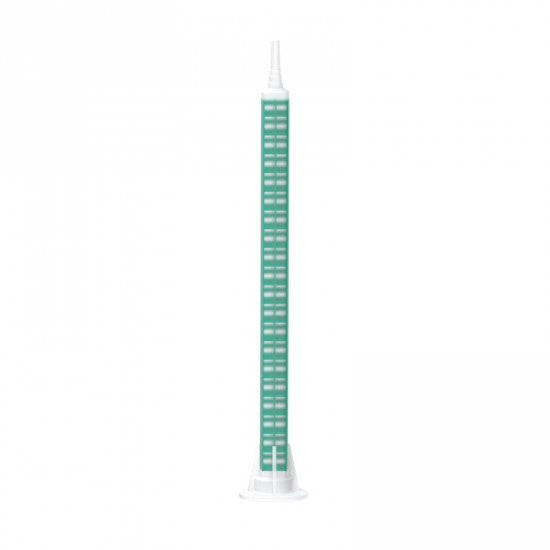 Teroson Teromix 11755C es esencialmente un mezclador estático que se coloca en el tubo de adhesivo. Generalmente se trata de adhesivos epóxicos de dos componentes con un volumen de hasta 50 ml, pero también existen mezcladores más grandes. Dentro del mezclador, el adhesivo se mezcla después de ser exprimido del tubo y así está listo para su uso inmediato. Mezclar, es decir, el mezclador Teroson Teromix 11755C, es un asistente muy eficaz, pero para cada aplicación adicional será necesario utilizar un nuevo mezclador. El adhesivo tiende a curar gradualmente en los canales de mezcla del mezclador, volviéndose inutilizable, y la limpieza es muy difícil; por lo tanto, recomendamos tener más de estos mezcladores en stock.