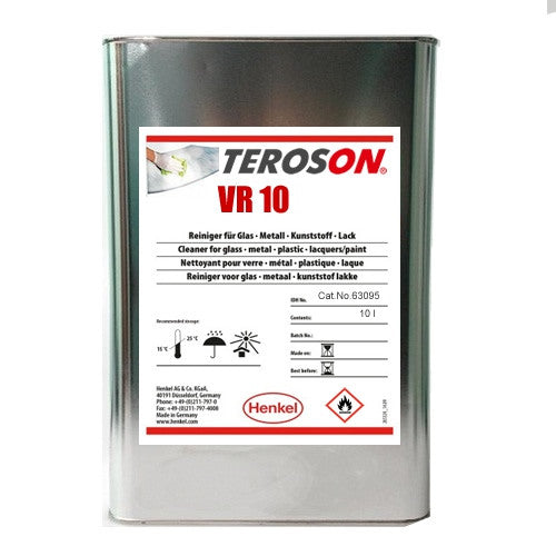 Teroson VR 10 (reemplaza VR 20) es un limpiador universal líquido y disolvente a base de hidrocarburos hidrogenados (sin adición de aromáticos y con bajo contenido de n-hexano). El producto no contiene hidrocarburos clorados. Con una exposición a corto plazo, no daña las pinturas utilizadas en la industria automotriz. El limpiador - FL no retrasa el curado de adhesivos/sellos a base de poliuretano.